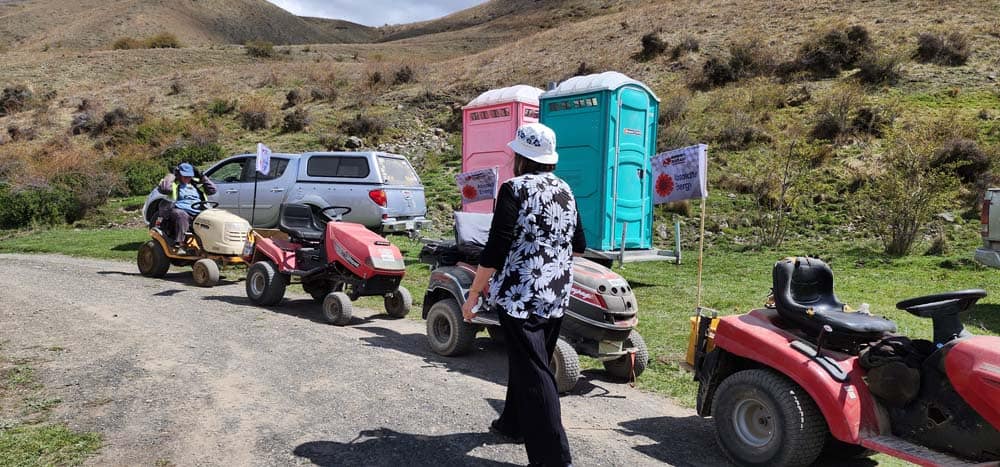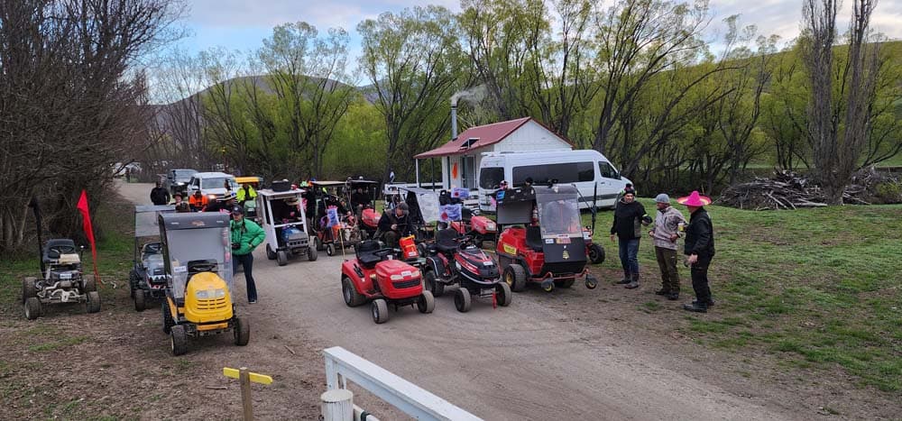 On Saturday 19th October, Mowsworth Rampage kicked off at 7am from the Cob Cottage Campground in the Molesworth, 46 determined riders and their support crews covered 86km on ride-on lawn mowers from Molesworth to Hanmer Springs. 12.5 hours of stunning scenery, laughs, and hanging out with some of the most genuine, hilarious people around. We wrapped up with a police escort through Hanmer township – what a way to finish!