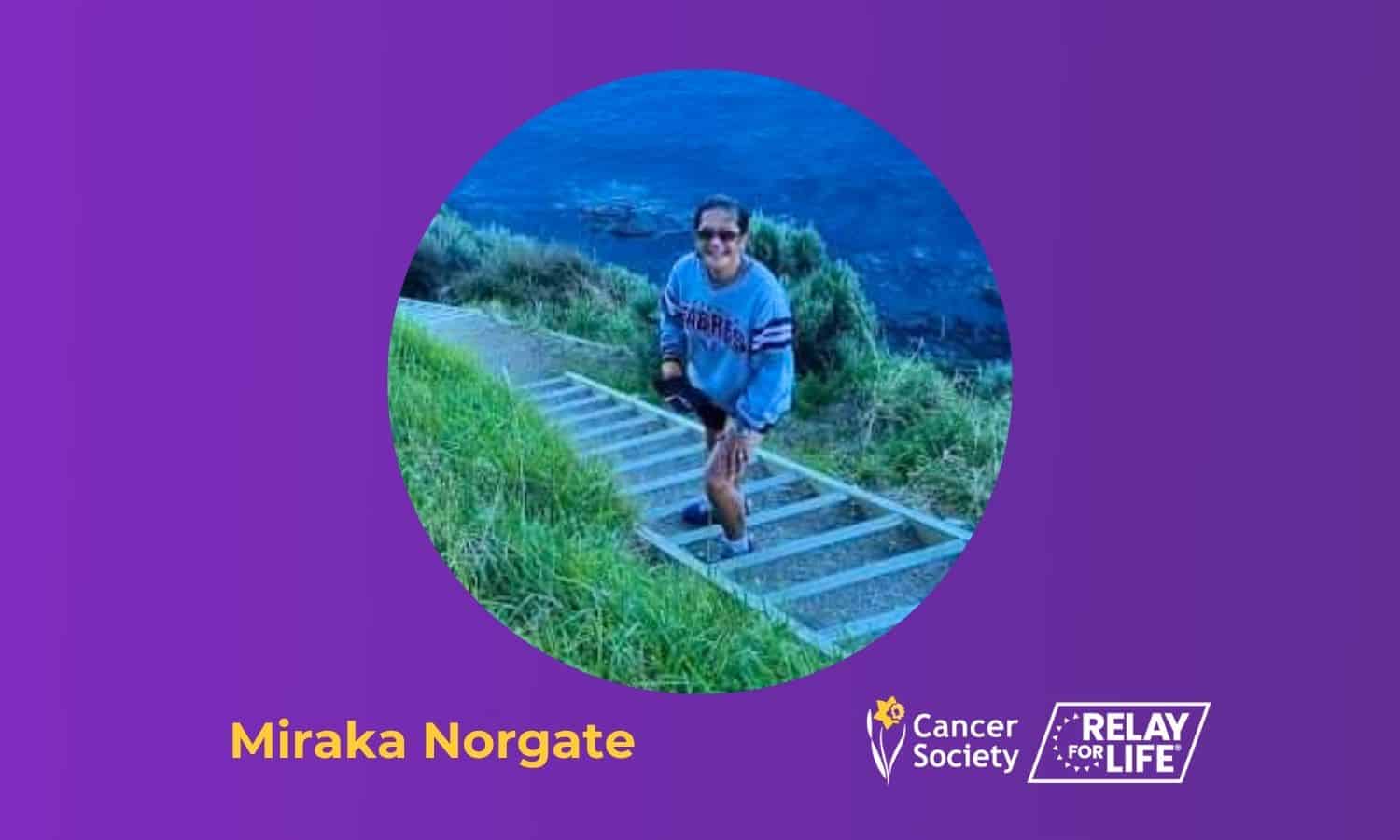 Tēnā koutou katoa, Ko Miraka Norgate tōku ingoa, I have been part of Relay For life for 23 years. Growing up with my father battling Lung Cancer, I witnessed the suffering and the lack of understanding surrounding this disease.